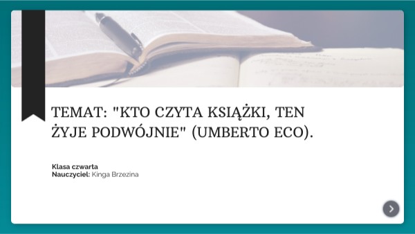 Temat: "Kto czyta książki, ten żyje podwójnie" (Umberto Eco).