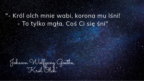 "- Król olch mnie wabi, korona mu lśni!- To tylko mgła. Coś Ci się śni"