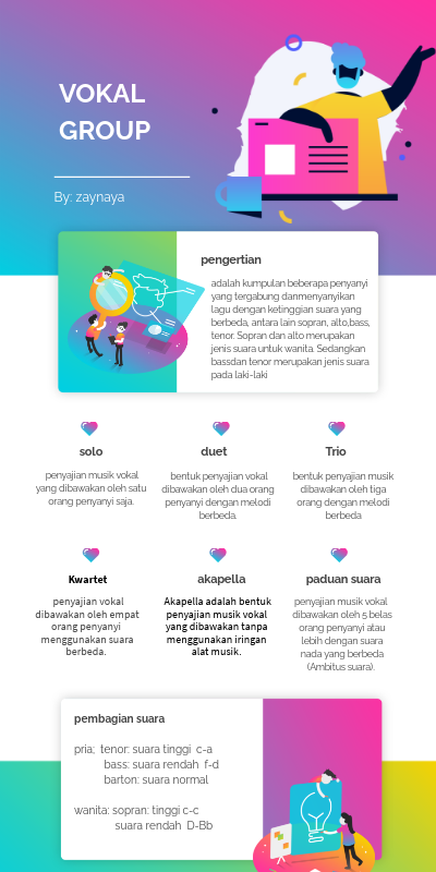 penyajian musik vokal dibawakan oleh 5 belas orang penyanyi atau lebih dengan suara nada yang berbeda (Ambitus suara).