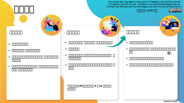 Une collaboration des agent.e.s de soutien à l'intégration des familles issues de l'immigration des CSS suivants : des Découvreurs, des Grandes-Seigneuries, de Montréal, des Patriotes, des Premières-Seigneuries, des Trois-Lacs et Marie-Victorin