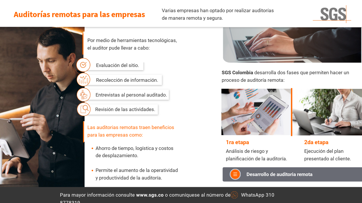 SGS Colombia desarrolla dos fases que permiten hacer un proceso de auditoría remota: