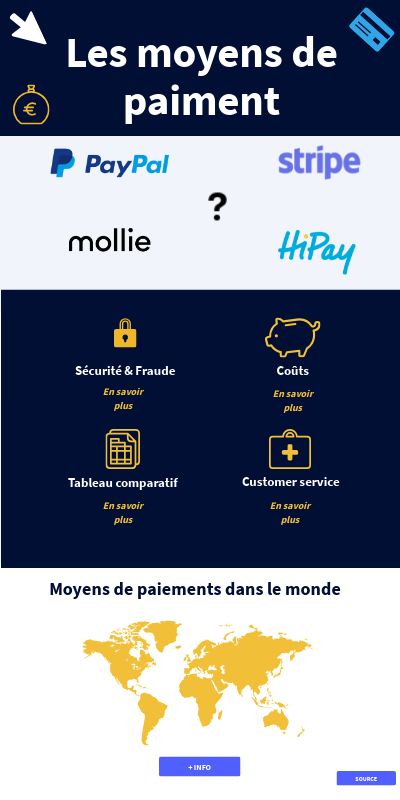 Coût fixe de 0.29€ à 1€ par transaction + Coût Variable de 0.5% à 2.99% par transactionÉviter les blocages