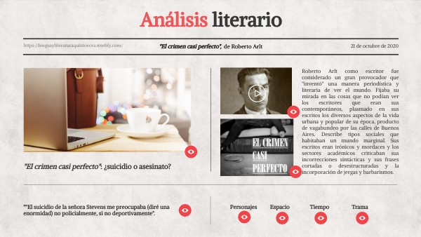 En este relato policial podemos seguir la teoría de Todorov (explico el porqué de nombrar algunos teóricos sobre narratología) de las dos historias: la del crimen y la de la investigación. En este caso el relato es narrado desde la perspectiva del detective, que al comienzo presenta el caso desde una 1º persona plural (“los funcionarios que intervinimos en el caso”) y luego se decanta en una 1º persona singular que es la voz del detective a través de la cual el lector irá siguiendo las pistas hasta descubrir al culpable. Responde a la trama policial clásica (nótese que es de 1940, reseña, campo intelectual del autor): presentación del caso, seguimiento de pistas, investigación de los sospechosos, interrogación a testigos, y finalmente, la solución del caso.