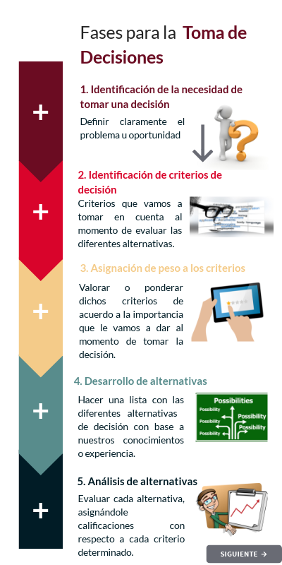 Hacer una lista con las diferentes alternativas de decisión con base a nuestros conocimientos o experiencia.