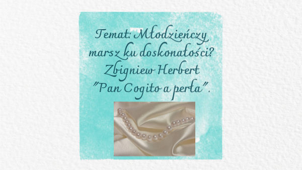 Temat: Młodzieńczy marsz ku doskonałości? Zbigniew Herbert"Pan Cogito a perła".