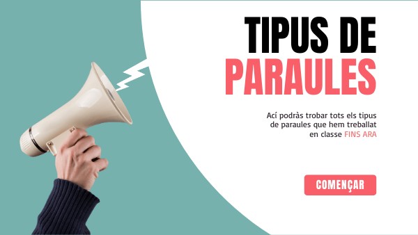 Ací podràs trobar tots els tipus de paraules que hem treballat en classe FINS ARA