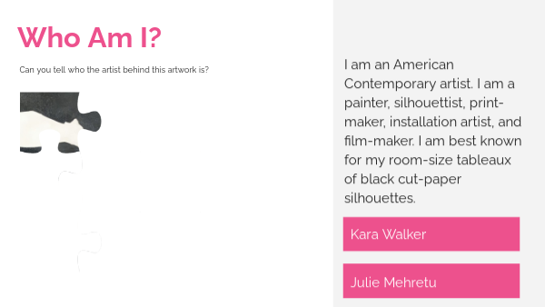 I am an American Contemporary artist. I am a painter, silhouettist, print-maker, installation artist, and film-maker. I am best known for my room-size tableaux of black cut-paper silhouettes.