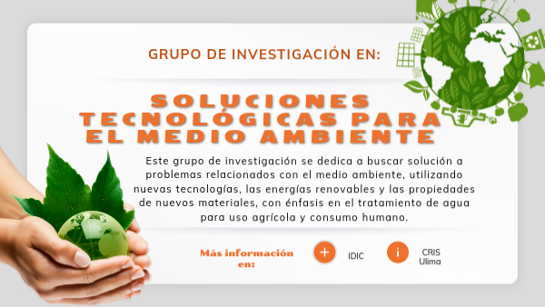 Este grupo de investigación se dedica a buscar solución a problemas relacionados con el medio ambiente, utilizando nuevas tecnologías, las energías renovables y las propiedades de nuevos materiales, con énfasis en el tratamiento de agua para uso agrícola y consumo humano.