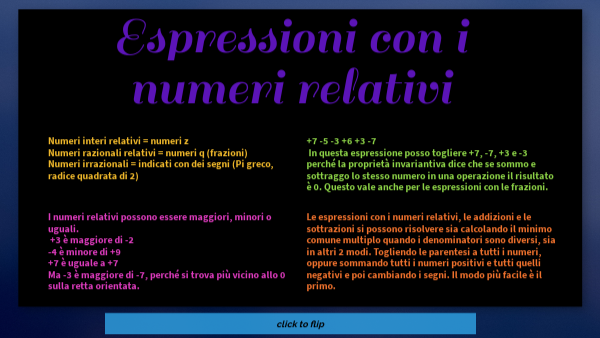 Espressioni con i numeri relativi, flash card - Matilde Malattino 3E