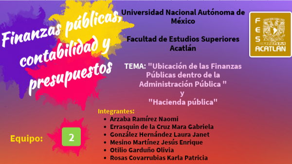 Universidad Nacional Autónoma de México Facultad de Estudios Superiores Acatlán TEMA: "Ubicación de las Finanzas Públicas dentro de la Administración Pública " y "Hacienda pública"