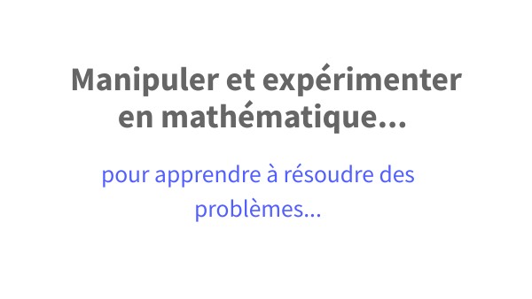 La manipulation et l'expérimentation doivent permettre aux élèves d'atteindre un but clair (trouver la réponse à une énigme mathématique, gagner à un jeu...). Afin de développer les compétences mathématiques des élèves (chercher, raisonner,...), il faut les aider à passer de la manipulation ou du jeu à l'expérimentation en variant les dispositifs de travail (individuel, groupe), le matériel, le type de problème (ouvert, arithmétique à plusieurs étapes, jeu à stratégie gagnante), la forme de la consigne...