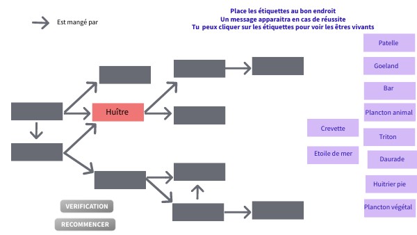 Place les étiquettes au bon endroit Un message apparaitra en cas de réussite Tu peux cliquer sur les étiquettes pour voir les êtres vivants