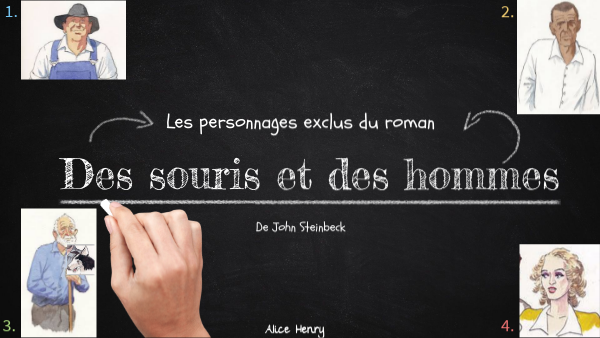 Par la lecture de ce roman, j'ai pu observé que John Steinbeck évoque plusieurs formes d'exclusion : -L'exclusion par le handicap mental avec Lennie -L'exclusion raciale avec Crooks qui est noir -L'exclusion par le handicap physique mais aussi par la vieillesse avec Candy -L'exclusion des femmes avec l'exemple de la femme de Curley Il se sert de ses personnages pour dénoncer ces discriminations et pour permettre au lecteur de déceler l'injustice de ces exclusions.