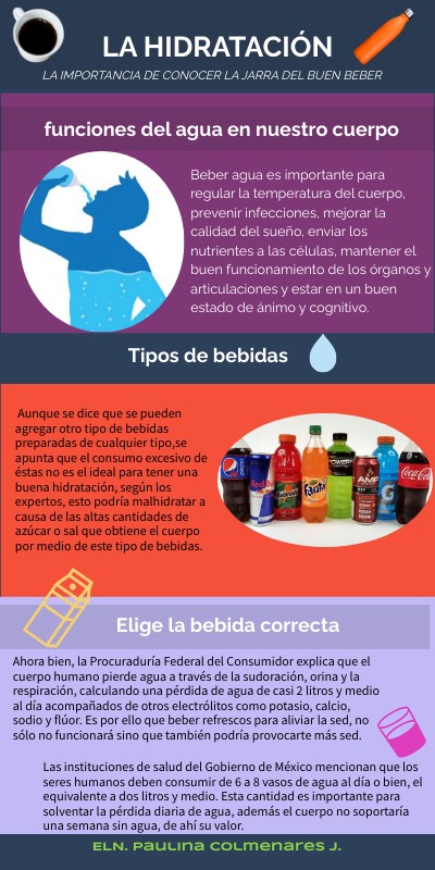 Ahora bien, la Procuraduría Federal del Consumidor explica que el cuerpo humano pierde agua a través de la sudoración, orina y la respiración, calculando una pérdida de agua de casi 2 litros y medio al día acompañados de otros electrólitos como potasio, calcio, sodio y flúor. Es por ello que beber refrescos para aliviar la sed, no sólo no funcionará sino que también podría provocarte más sed.