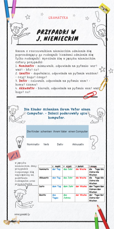 W języku niemieckim dany przypadek rozpoznaje się najczęściej na podstawie rodzajnika oraz przymiotnika
