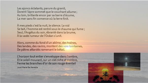Ce qui m'a touché dans ce texte et la personnification du soleil par exemple "le soleil mourant" que le soleil disparaît et réapparaît tous les jours depuis des milliards d’années et pour encore plusieurs millions voir milliards d'années