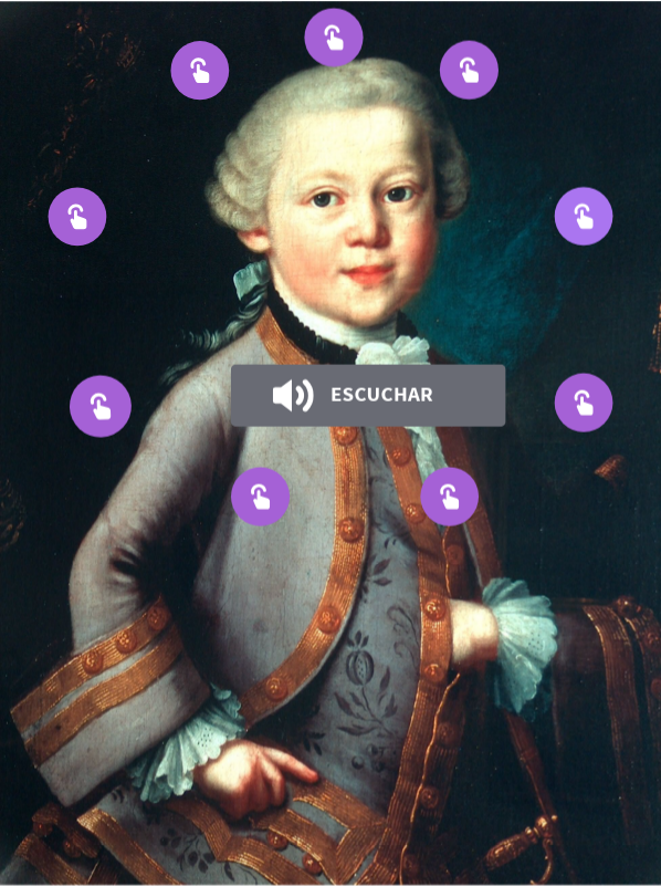 iMAGEN INTERACTIVA DE MOZART para conocer aspectos de su vida y su obra. Recomendado para niños y jóvenes.
