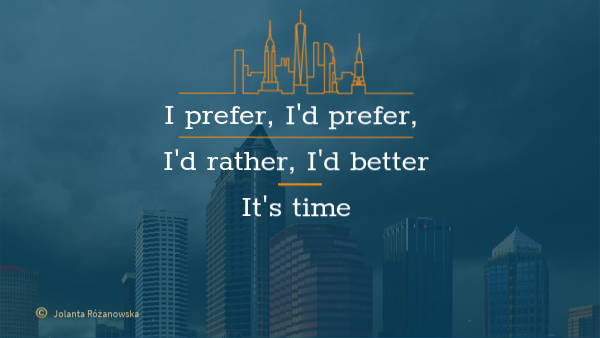 I prefer, I'd prefer, I'd rather, I'd better It's time