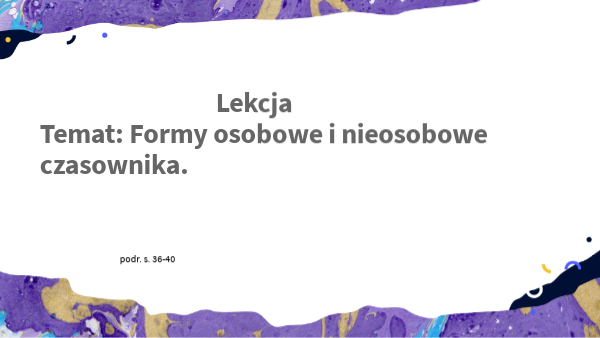 Lekcja Temat: Formy osobowe i nieosobowe czasownika.