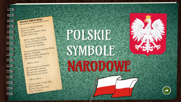 Polskie symbole narodowe, każde dziecko wymienić jest gotowe. Godło to na czerwonym tle Orzeł Biały, złotą koronę ma ten ptak okazały. I flaga biało-czerwona dumnie powiewa wywieszona. Hymn to “Mazurek Dąbrowskiego”, wielka pieśń narodu polskiego.