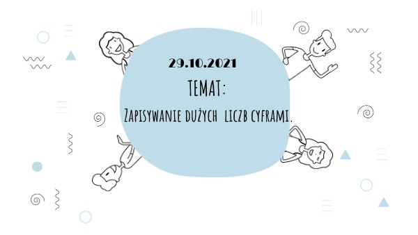 Na dzisiejszej lekcji nauczycie się zapisywać cyframi bardzo duże liczby, króre wcześniej zostały zapisane słowami lub wypowiedziane. Zwróććie uwagę na pisownię niektórych liczb. Z tej lekcji Nie przesyłajcie mi Żadnych zadań! Pamiętajcie, że uczycie się dla siebie. Pozdrawiam!