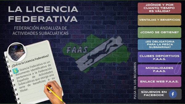 a licencia Federativa es un documento identificativo de pertenencia a la Federación Española de Actividades Subacuáticas que otorga una serie de beneficios a su titular.