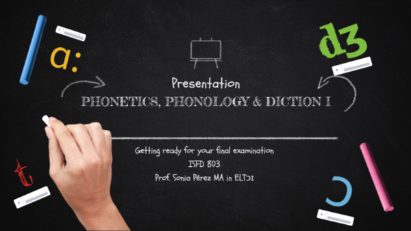 Getting ready for your final examination ISFD 803 Prof. Sonia Pérez MA in ELTɔɪ