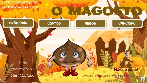 Detrás dunha montaña hai unha casa na que vive a castañeira. Cando chega o outono, a castañeira esperta ben cedo.
