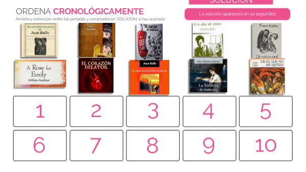 Arrastra y coloca por orden las portadas y comprueba en 'SOLUCIÓN' si has acertado
