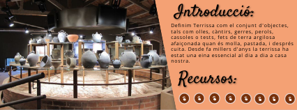 Definim Terrissa com el conjunt d'objectes, tals com olles, càntirs, gerres, perols, cassoles o tests, fets de terra argilosa afaiçonada quan és molla, pastada, i després cuita. Desde fa millers d'anys la terrissa ha estat una eina essencial al dia a dia a casa nostra.