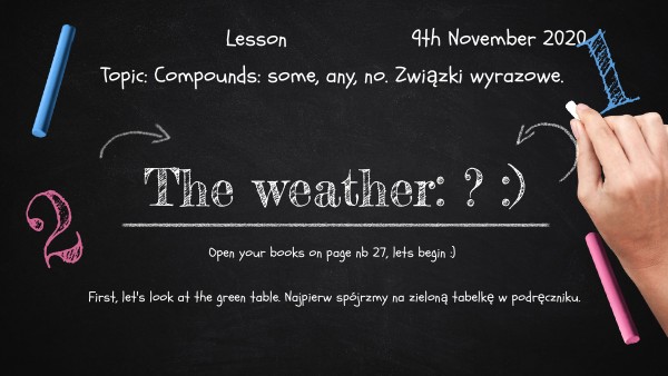 Lesson 9th November 2020 Topic: Compounds: some, any, no. Związki wyrazowe.