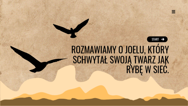 Rozmawiamy o joelu, który schwytał swoją twarz jak rybę w sieć.