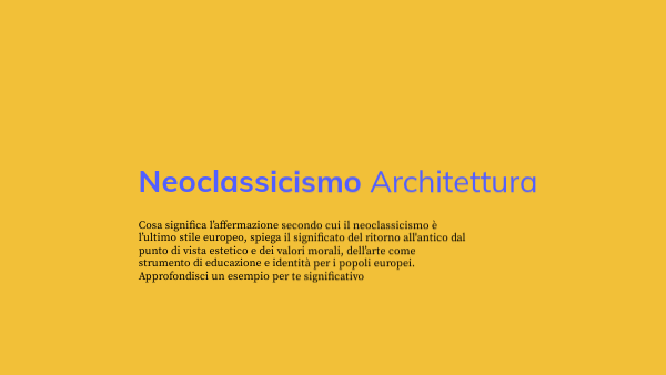 Cosa significa l’affermazione secondo cui il neoclassicismo è l’ultimo stile europeo, spiega il significato del ritorno all'antico dal punto di vista estetico e dei valori morali, dell’arte come strumento di educazione e identità per i popoli europei. Approfondisci un esempio per te significativo