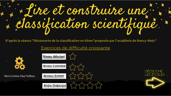 D'après la séance "Découverte de la classification en 6ème"proposée par l'académie de Nancy-Metz"