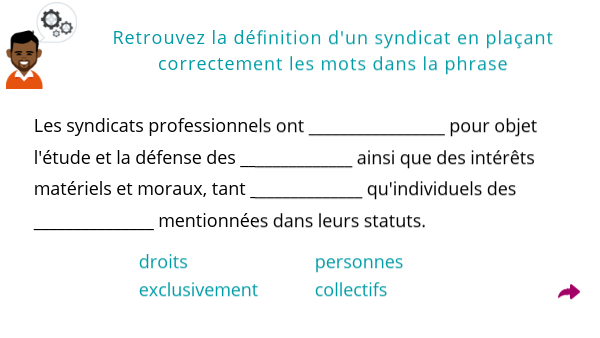 Retrouvez la définition d'un syndicat en plaçant correctement les mots dans la phrase
