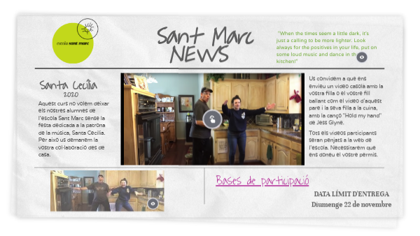 Aquest curs no volem deixar els nostres alumnes de l'escola Sant Marc sense la festa dedicada a la patrona de la música, Santa Cecília.Per això us demanem la vostra col·laboració des de casa.