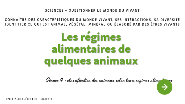 Séance 4 : classification des animaux selon leurs régimes alimentaires