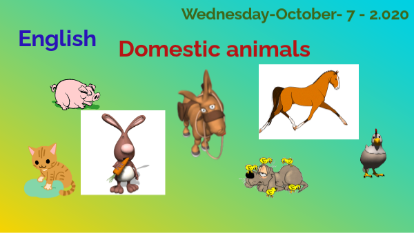 * Escribo en mi cuaderno la fecha del día.* Escribo como título: The domestic animals. * Escucho atentamente la explicación de mi profe. * Tomo apuntes de la explicación