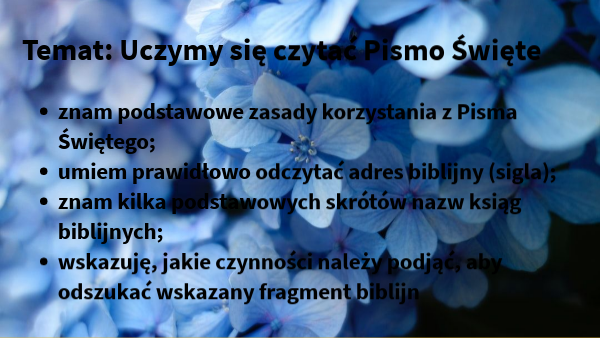 - znam podstawowe zasady korzystania z Pisma Świętego;