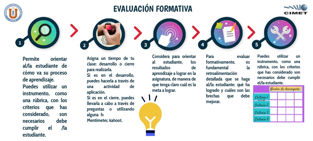 Para evaluar formativamente, es fundamental la retroalimentación detallada que se haga al/la estudiante: qué ha logrado y cuáles son las brechas que debe mejorar.