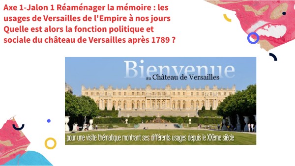 Axe 1-Jalon 1 Réaménager la mémoire : les usages de Versailles de l'Empire à nos jours Quelle est alors la fonction politique et sociale du château de Versailles après 1789 ?