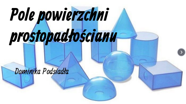 Cel lekcji: Ćwiczenie umiejętności obliczania pola powierzchni prostopadłościanu.