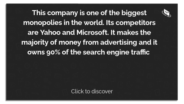 This company is one of the biggest monopolies in the world. Its competitors are Yahoo and Microsoft. It makes the majority of money from advertising and it owns 90% of the search engine traffic