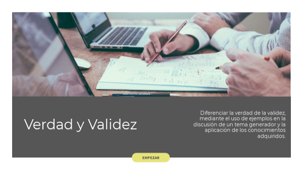 Diferenciar la verdad de la validez, mediante el uso de ejemplos en la discusión de un tema generador y la aplicación de los conocimientos adquiridos.
