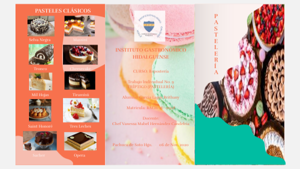 CURSO: Repostería Trabajo Indivudual No. 9 TRÍPTICO (PASTELERÍA) Alumno: Garcia Lagos Brithany Matricula: BACH-18- 0008 Docente: Chef Vanessa Mabel Hernández Candelria