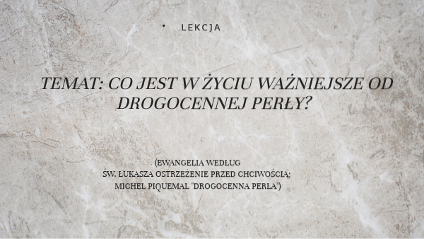 TEMAT: CO JEST W ŻYCIU WAŻNIEJSZE OD DROGOCENNEJ PERŁY?