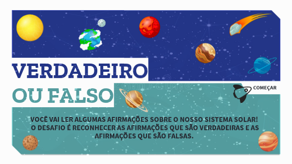 VOCÊ VAI LER ALGUMAS AFIRMAÇÕES SOBRE O NOSSO SISTEMA SOLAR! O DESAFIO É RECONHECER AS AFIRMAÇÕES QUE SÃO VERDADEIRAS E AS AFIRMAÇÕES QUE SÃO FALSAS.