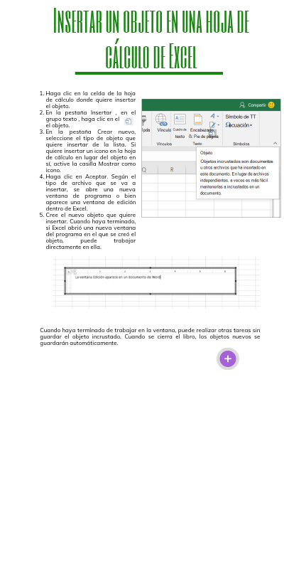 Cuando haya terminado de trabajar en la ventana, puede realizar otras tareas sin guardar el objeto incrustado. Cuando se cierra el libro, los objetos nuevos se guardarán automáticamente.