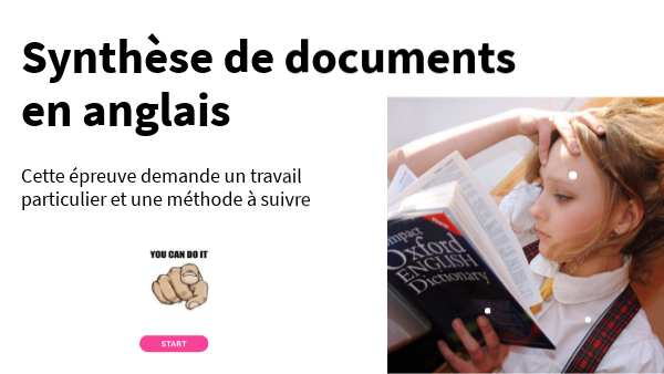 La synthèse de document est un exercice demandant précision et rigueur. Il faut une approche totalement objective: seuls les faits et le point de vue présentés par les documents doivent être pris en compte. Les jugements de valeur et l'introduction d'idées ou de connaissances annexes (même en rapport avec le thème commun) sont à proscrire. Dans cette épreuve, maîtriser l'anglais ne suffit pas, il faut savoir adopter la bonne méthodologie de travail, pour ne pas perdre de temps et ne pas faire de hors sujet. Tous les documents doivent être synthétisés (ne jamais laisser de côté celui qu'on n'a pas comris!!!)
