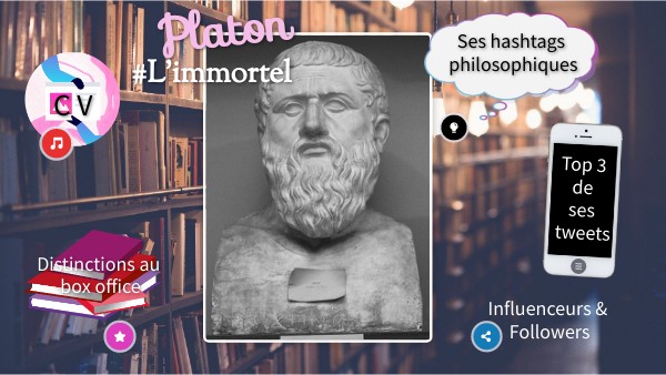Bibliohraphie : - Hélène SOMMET. Platon à la plage . Dunod, 2020,232p. ISBN 978-2-10-080452-8 - Michèle TILLARD. Socrate. Ellipses, 2020, 0252p . ISBN 9782340-035874 - Ocrave LARMAGNAC-MATHERON. Vie d’un homme illustre. Philosophie magasine, 2020, hors-série N°45, ISSN 2104-9246 - E.CHAMBRY. Platon, premiers dialogues. Flammarion, 1967, 442p. ISBN 978208701299 Luc BRISSON, Platon l’écrivain qui inventa la philosophie. Lexio, 2017, 298p. ISBN978-2-204-14104-8 Sitographie - Francis WYBRANDS, « PLOTIN, en bref », Encyclopædia Universalis [en ligne], consulté le 10 novembre 2020. URL : https://www.universalis.fr/encyclopedie/plotin-en-bref/ - François TRÉMOLIÈRES, « ENNÉADES, Plotin - Fiche de lecture », Encyclopædia Universalis [en ligne], consulté le 10 novembre 2020. URL : https://www.universalis.fr/encyclopedie/enneades/ - "Portrait peint par Friedrich Wilhelm Nietzsche _DDC1516" par Abode of Chaos est sous licence CC BY 2.0. https://creativecommons.org/licenses/by/2.0/ - "IMG_6975DE"by jean louis mazieres is licensed with CC BY-NC-SA 2.0 To view a copy of this license,visit https://creativecommons.org/licenses/by-nc-ca/2.0/ - "Victor Hugo , Paris,sculpture.Skulptur,Schriftsteller Viktor Hugo." by eagle1effi is licensed with CC BY-NC-ND 2.0. To view a copy of this license, visit https://creativecommons.org/licenses/by-nc-nd/2.0/